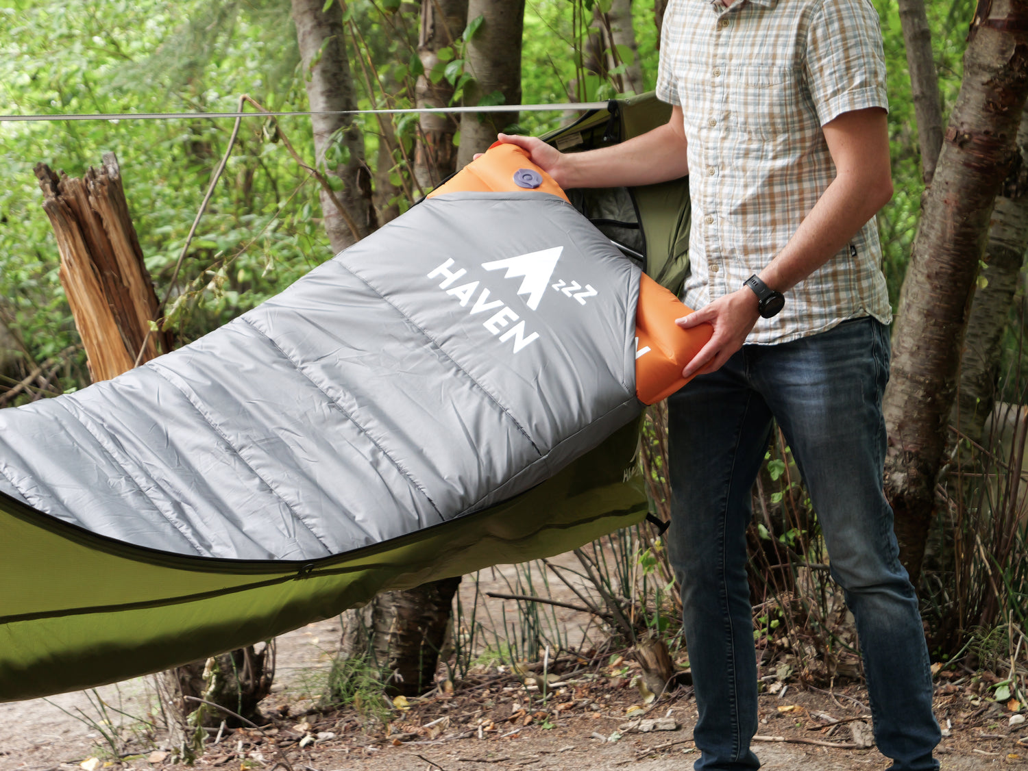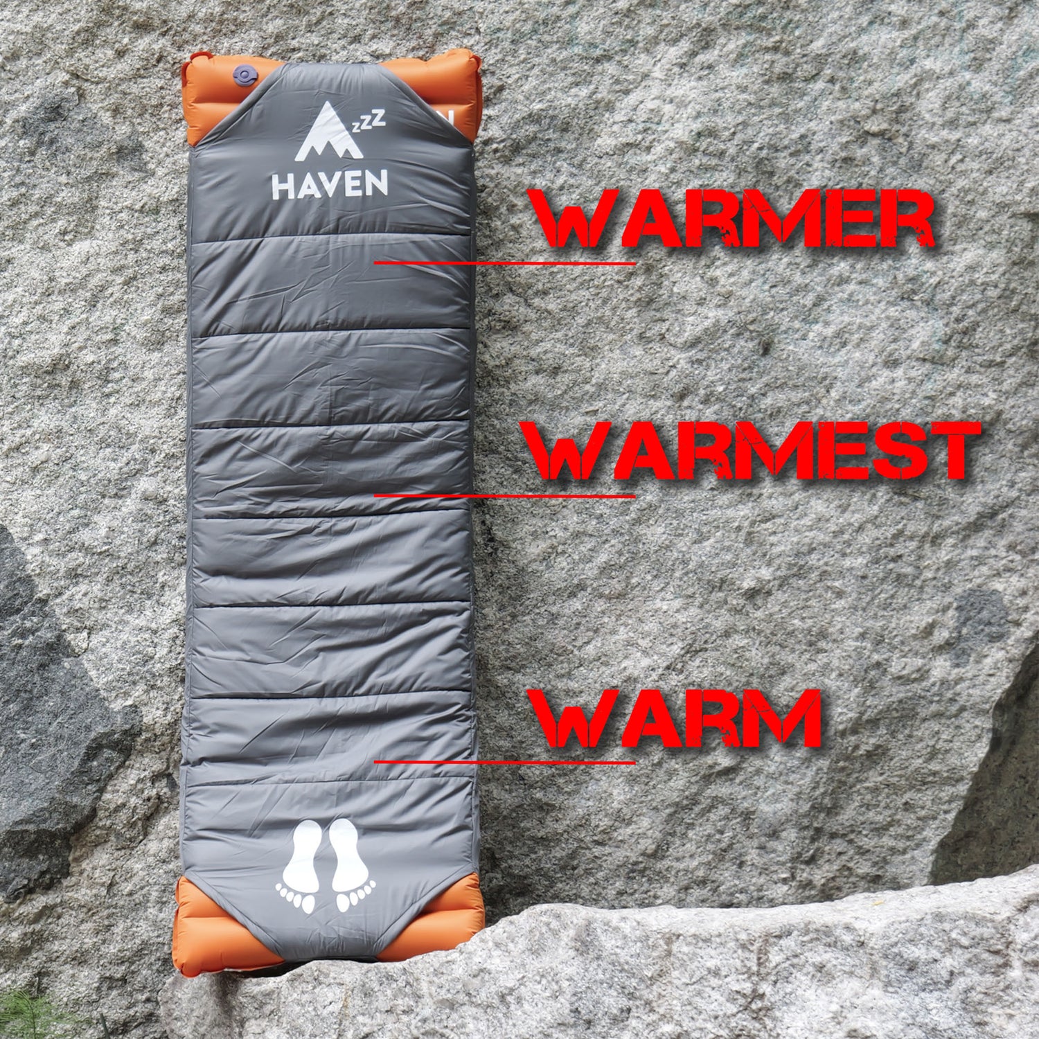 エアマットに装着することで身体から出た熱を逃がさず、下からの冷気も遮断して防寒性を高め、冬キャンプをより暖かく快適にお楽しみいただけます。