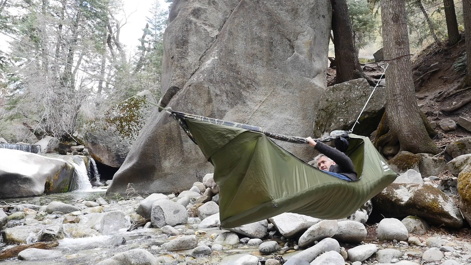 設営後にハンモックを外さずに角度や高さを